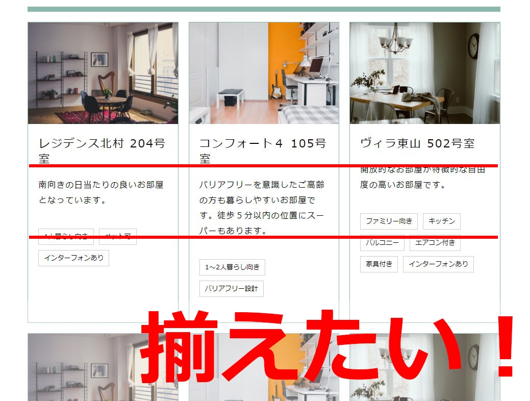 ↑同じレイアウトでも、中身の文字数が違うと高さがずれてしまう…